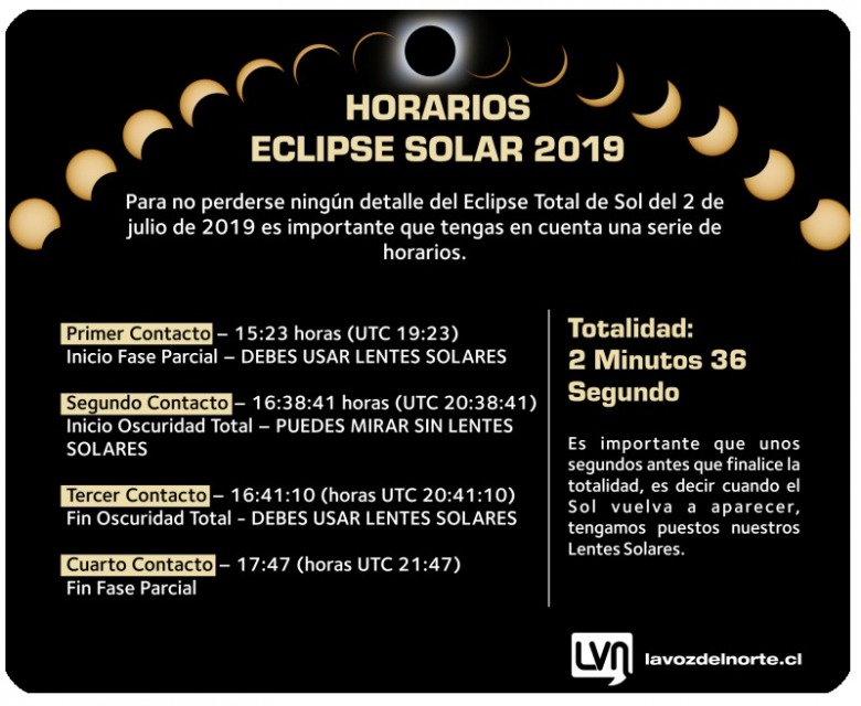 El martes 2 de Julio de 2019, a las 16:38hrs, seremos testigos de un eclipse total de Sol que cruzará la región de Coquimbo y parte de la región de Atacama, ambas zonas reconocidas por contar con los cielos más limpios del planeta para el desarrollo de la Astronomía.